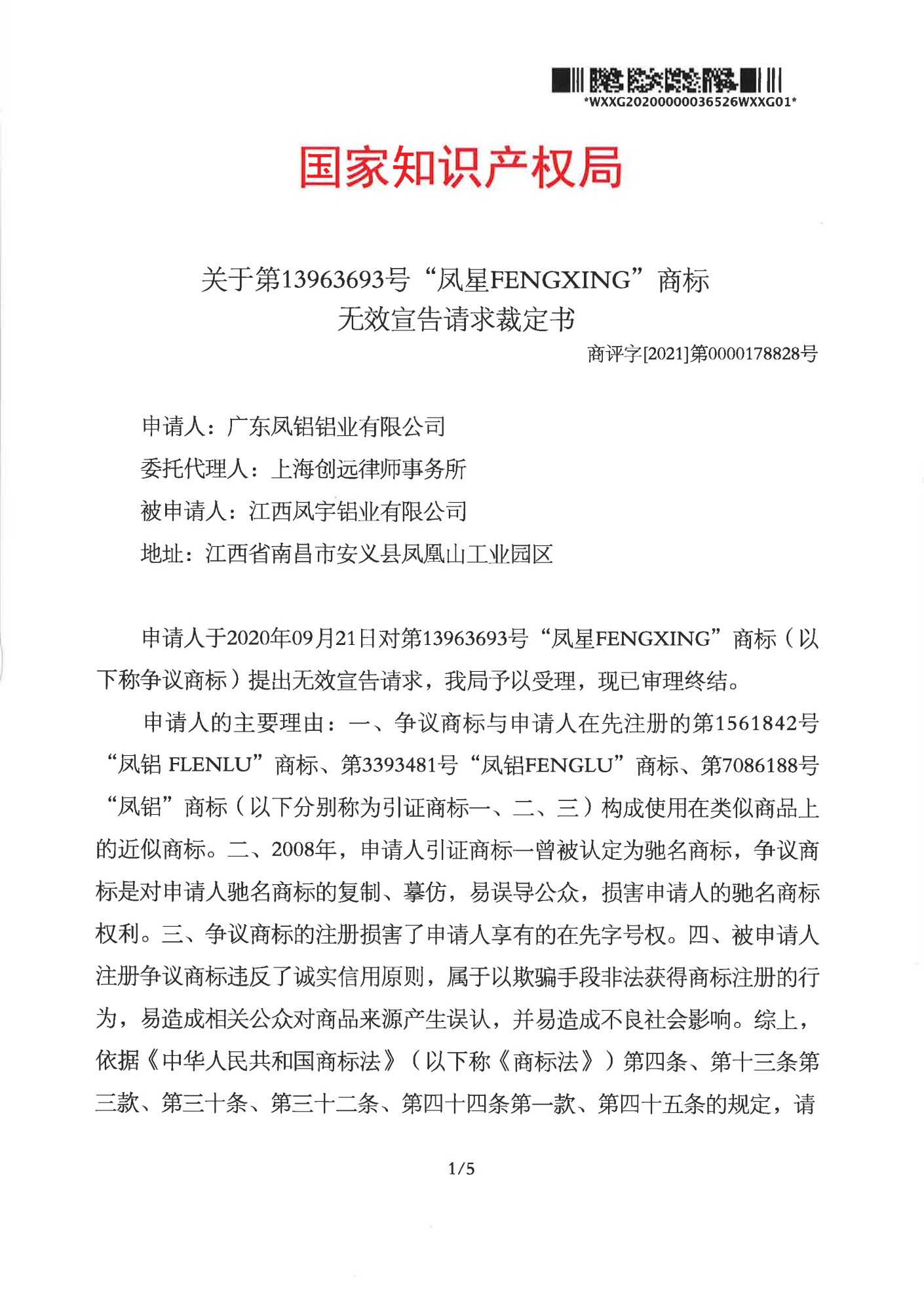 酒泉辉知队 | 国家知识产权局:“凤星”商标无效